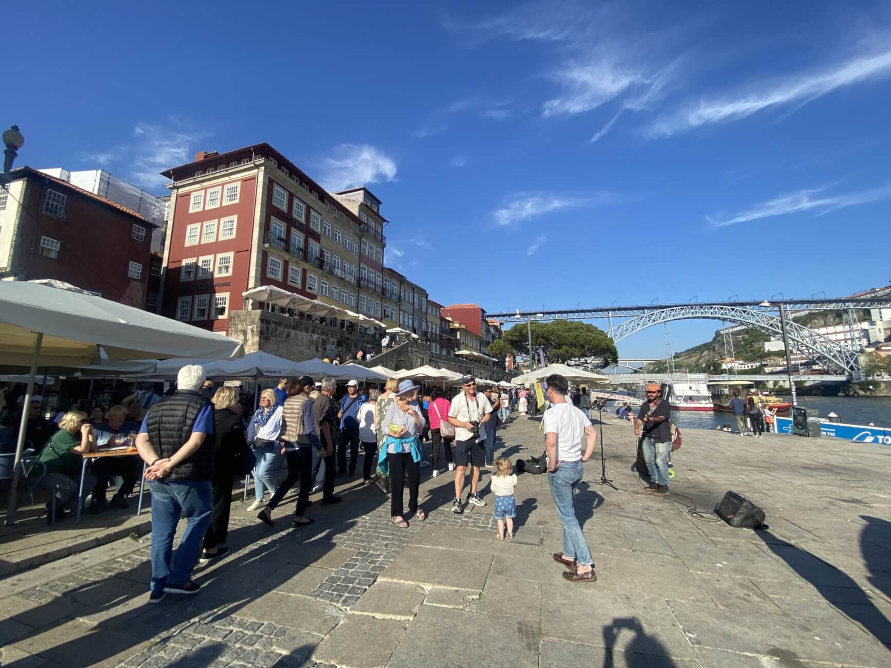 One thing you won’t miss while crossing over from Porto to Gaia is the building with the signs showing Caves Cálem. While it seemed like a tourist trap to us (we preferred visiting the wine cellars in Douro Valley instead), many people speak highly of this experience while visiting Porto in 3 days. The ticket allows you to visit the massive cellars with a guided tour, taste some of their exquisite port wine and learn about how they’re made, and also experience a Fado show (a traditional musician Portuguese experience). We spent the rest of the day exploring Cais de Gaia, the riverside walkway that offered beautiful views of Porto from the other side, and lined with several cafes and restaurants, sipping on port wine, and enjoying the vibe.